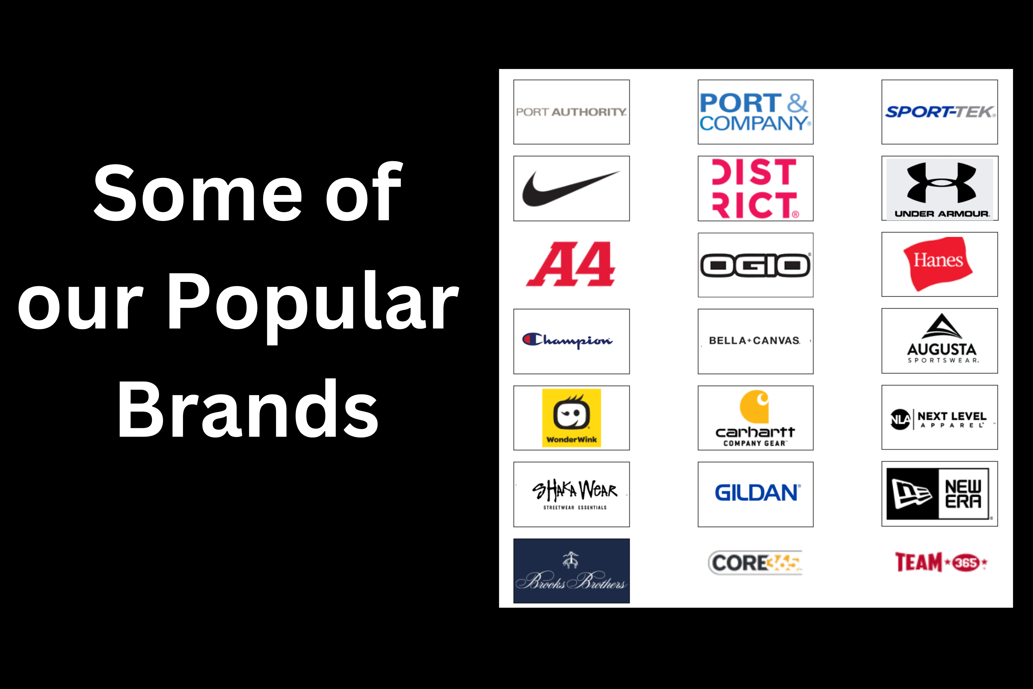 - Brand, style, and color of shirts selected – the quality in the item you choose will affect your pricing , so premium and branded apparel items will be more expensive that our standard basic apparel styles. You can view some of the different apparel options in our Catalogs.