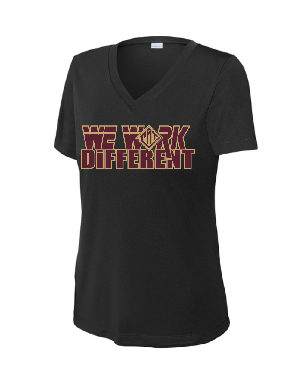 Cat Takeover- Black Ladies Vneck- We Work Different