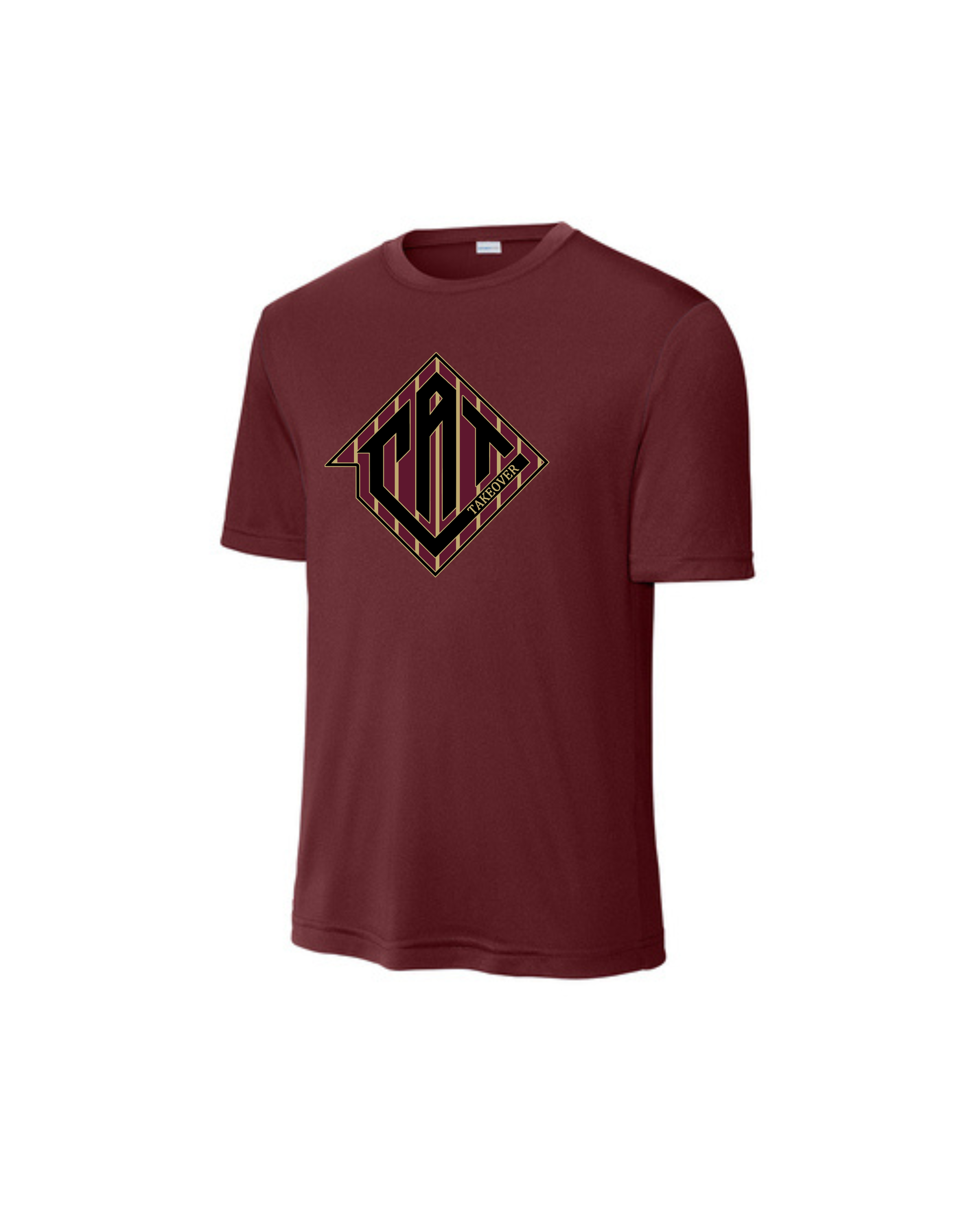 Cat Takeover - CAT Pin Striped Logo Performance Short Sleeve Tee